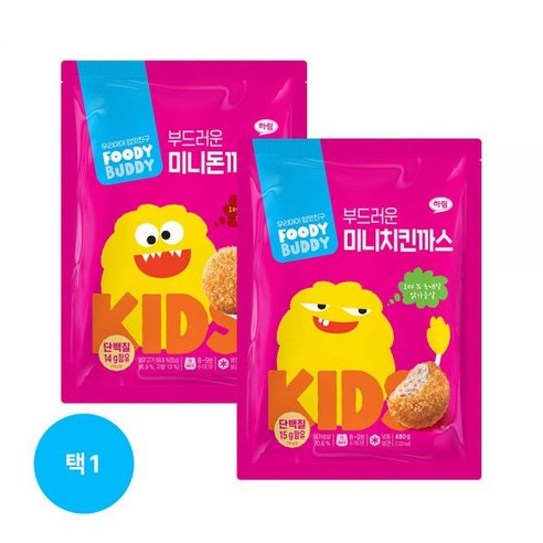 푸디버디 미니돈까스와 미니치킨까스가 함께 들어있는 480g을 선택할 수 있는 상품입니다. 한 가지만 선택해도 되는 이 제품은 다양한 식사 메뉴에 활용하기 좋습니다.